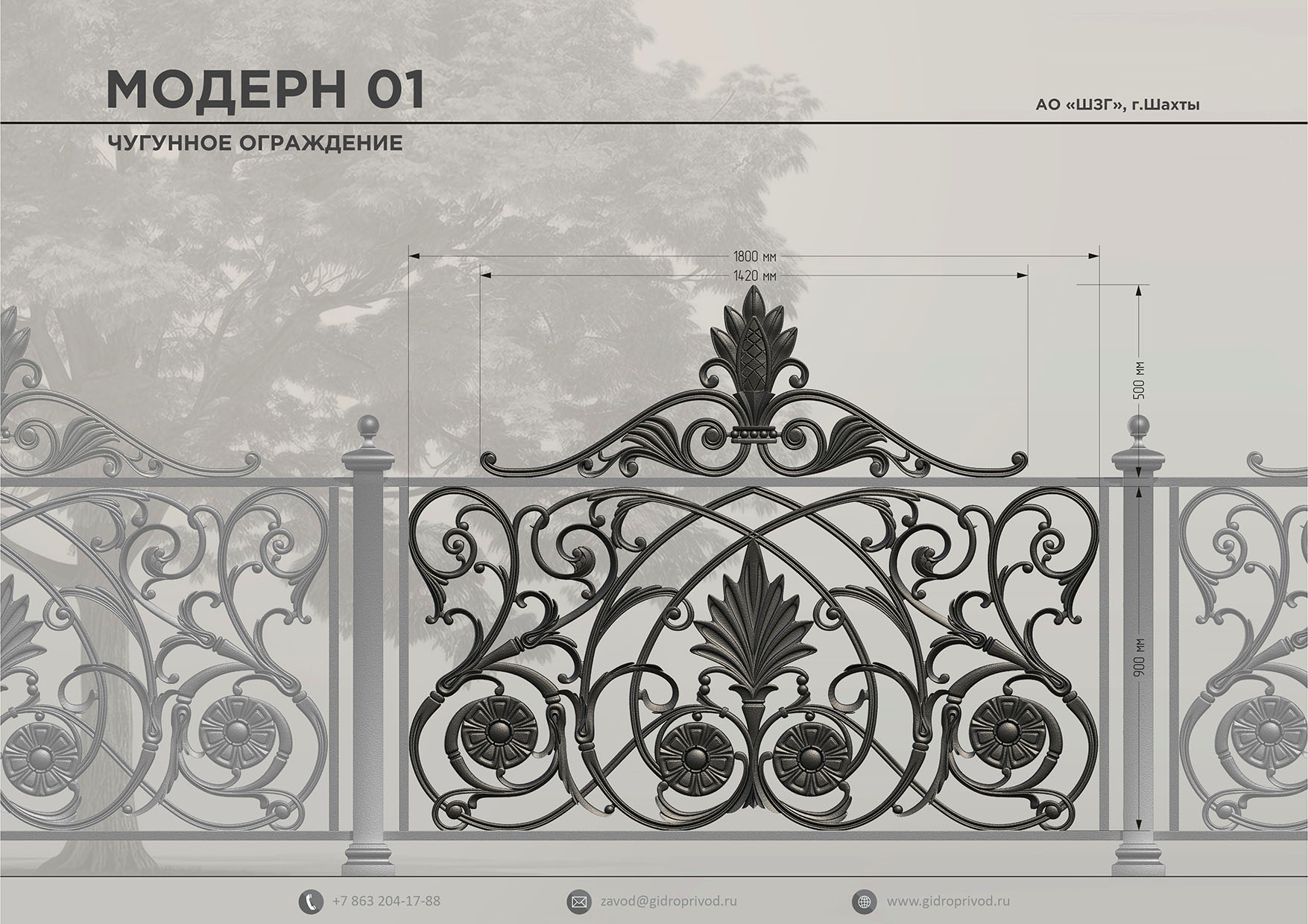 Чугунные ограждения предназначены для оформления парков, скверов, общественных пространств. Они выполняют не только защитную, но и декоративную функцию, подчёркивая стиль территории. Крепкие, добротные, практически не разрушаемые чугунные изделия служат десятилетиями и за сотню лет практически не меняют своих свойств и внешнего вида. Они не подвержены температурным перепадам, на них не оказывает влияния любая влажность окружающей среды, они имеют высокую сопротивляемость к износу и стойкость механическим воздействиям. Под прямыми солнечными лучами чугунные ограждения не деформируются и не изменяют свой цвет. При этом изделия требуют совсем небольшого ухода.Технические характеристики