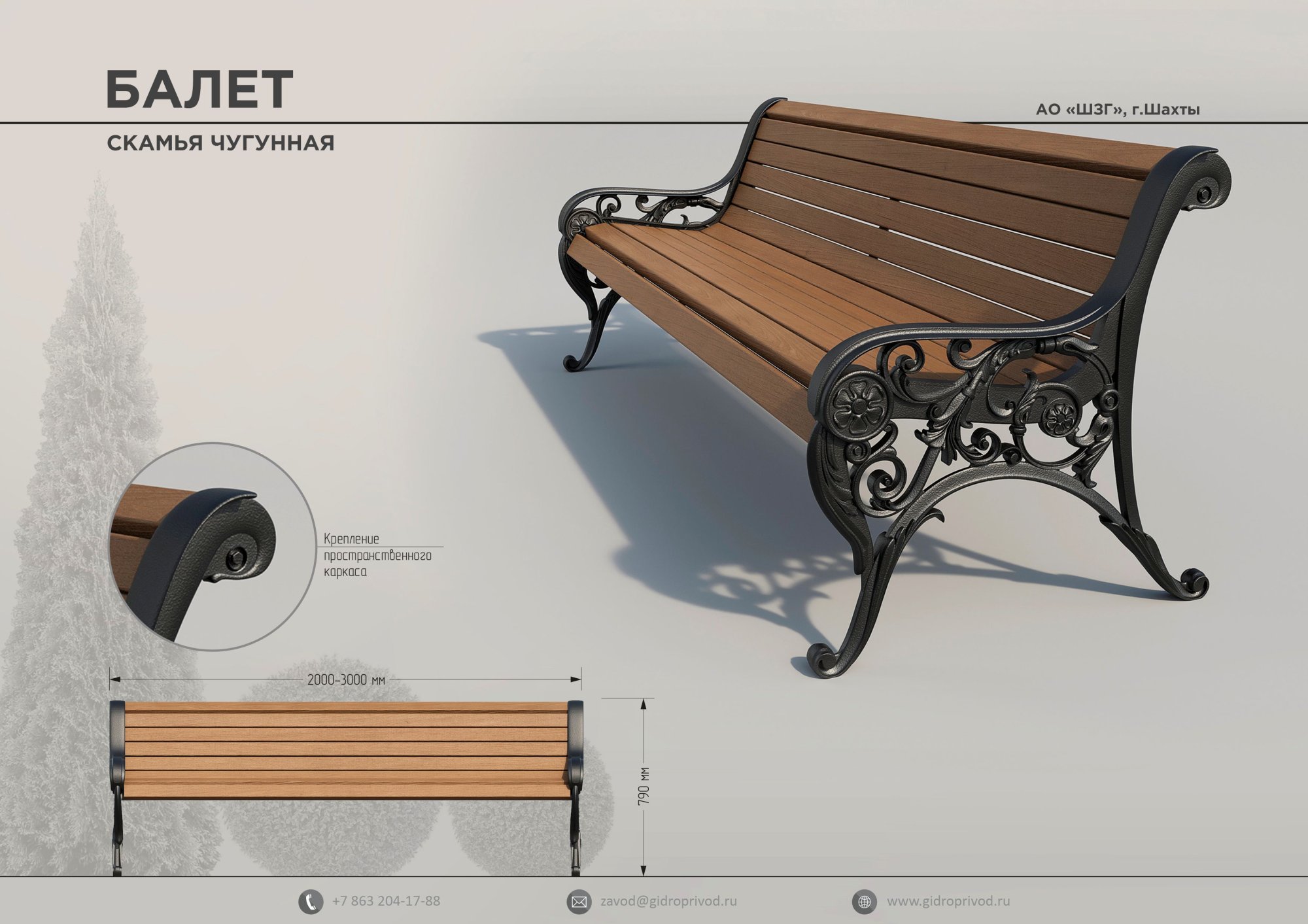 Материал: Металл/Чугун СЧ-20/Брус ДПК
